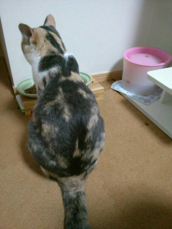 お皿に向かって座ります。健気に待つ、この背中には負けてしまうf(^_^;