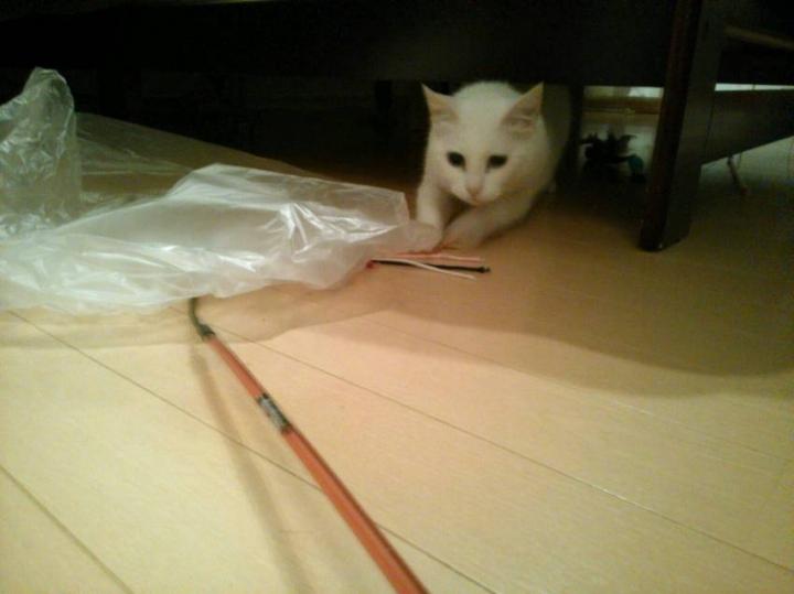 ビニールの下で動かしてみました。マリーちゃんもにゃんこだね??♪