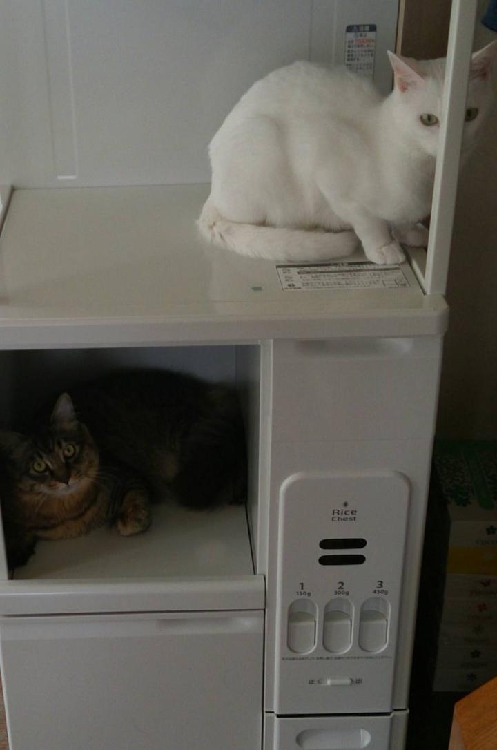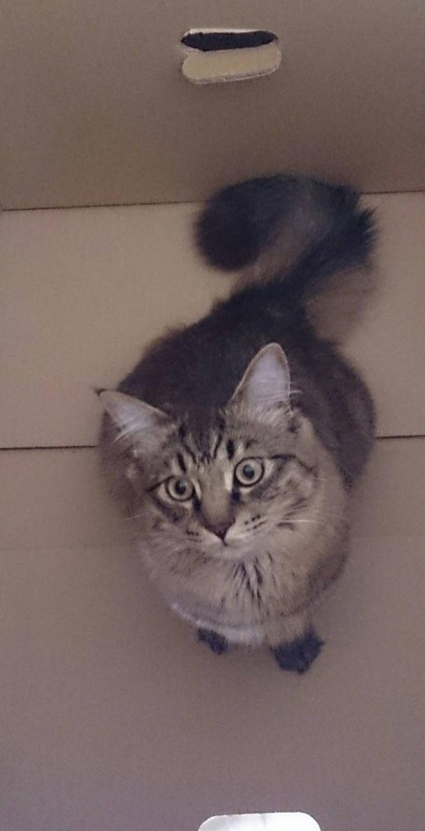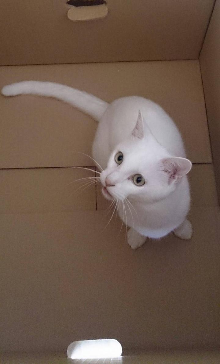 そして、猫て本当に段ボールが大好きですよね♪案の定ラックが入ったいた大きい段ボールに入りました。