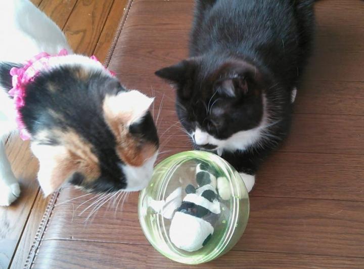 触りたいけど触れないニャンコ達をテレビの裏も覗きながら、バロンは不思議そうに観ています。