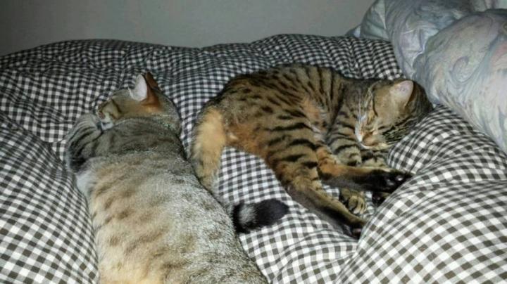 我が家にはハードタイプのキャリーは2つしかないので、3ニャンズ受診の時は1匹はスリングに入れて、肩にかけて行きます。