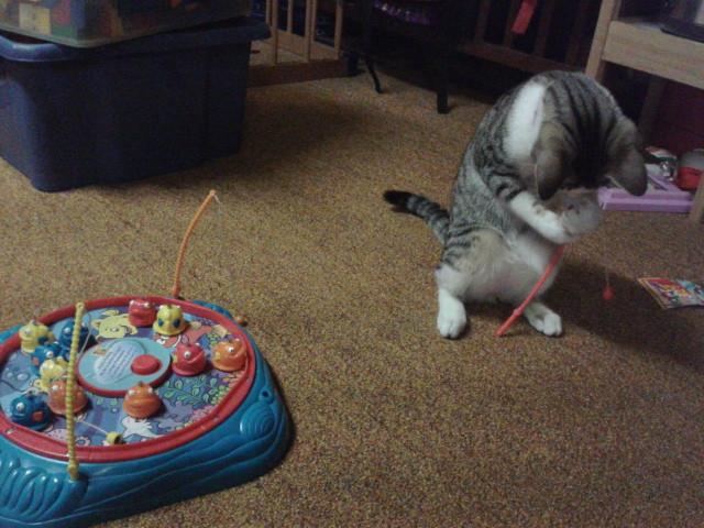 おもちゃの魚釣りの竿とか。