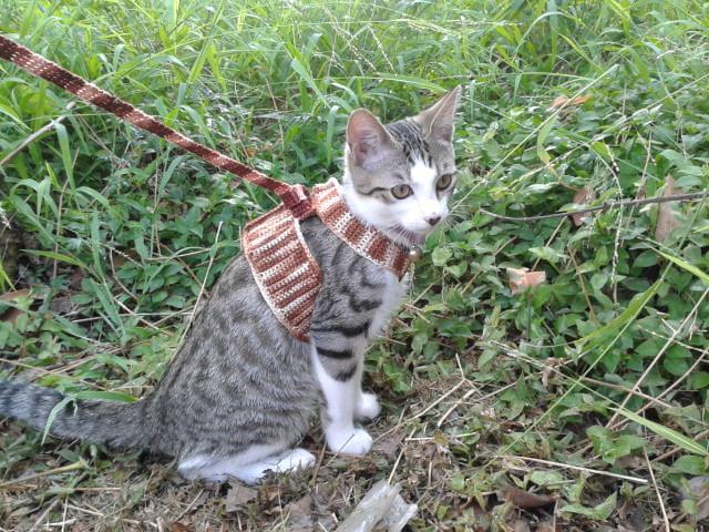以前作った試作品の緑色ハーネスでは 腕周り辺りがちょっときつそうだったので、新しくコーヒー色ハーネスを作りました。
