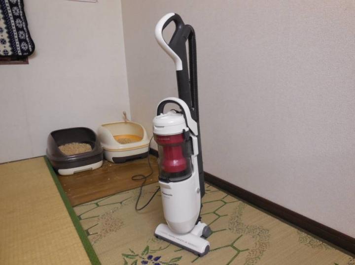 こうやって、猫の毛と砂の戦に立ち向かう飼い主に