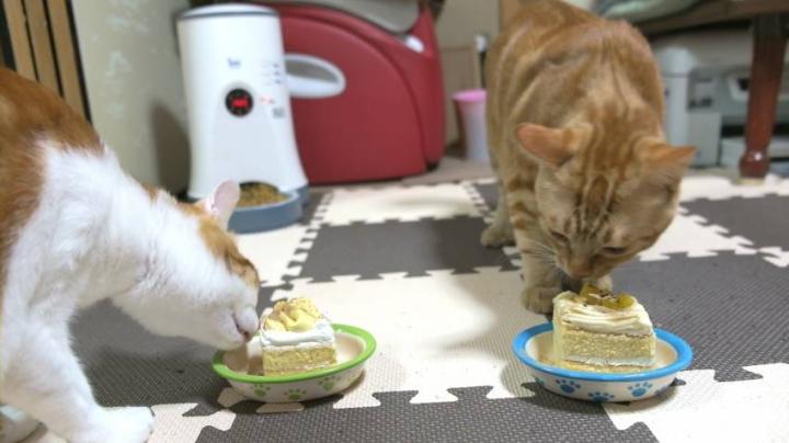 まぁ食べないでしょうなぁと予測して、このあとまたたびの粉をトッピング。さぁ召し上がれ。1歳お誕生日おめでとう!