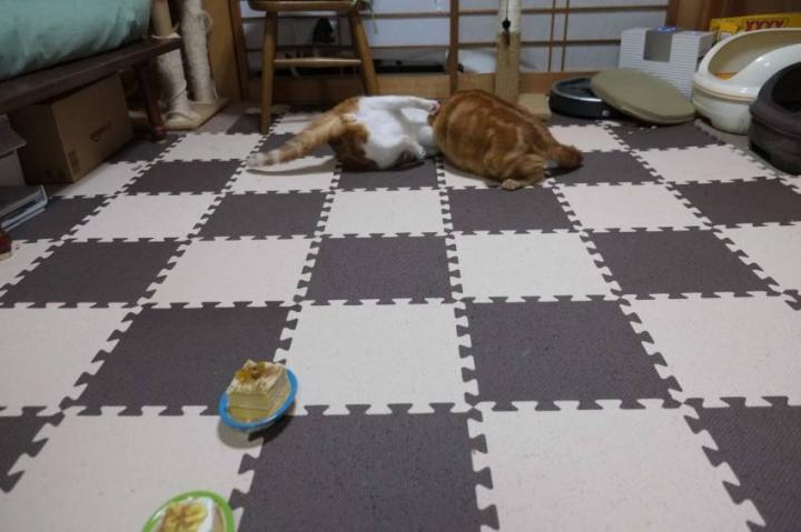 しばらくしてケーキそっちのけで暴れ始めましたとさ(苦笑)。