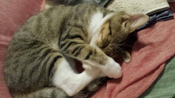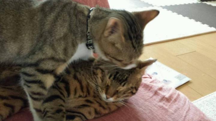 ウトウトしてたニコちゃんに無理やりグルーミング。
