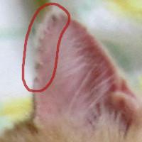 なんか……カサブタみたいなのが耳のフチに?ちなみに耳の裏にもちょこちょこカサブタ&脱毛