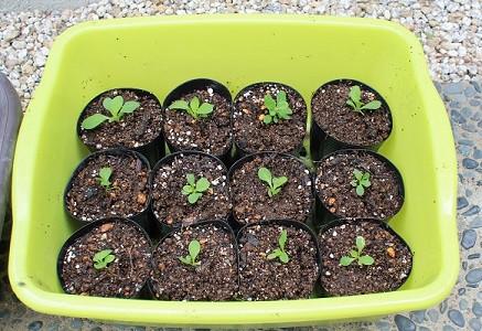 こちらは昨年採取した、ピンク系のペチュニアと、赤・紫のサフィニアを発芽させ