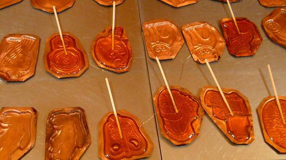 銅版の型の中にべっ甲飴を流してあります。