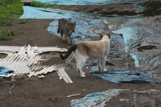 そこへ、ママニャアの獲物捕獲時の「ニャ~ウ、ニャ~ウ」の声が。
