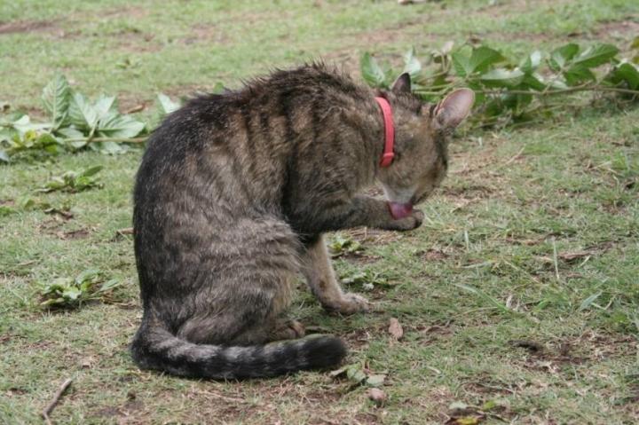 ニャアちゃん、麦畑で仕事をしてきたとみえて、びしょびしょ・・・。