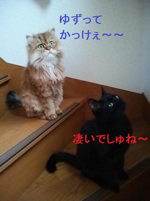 いま振り返ったら、ゆずが「おばけだぞ~」のポーズで
