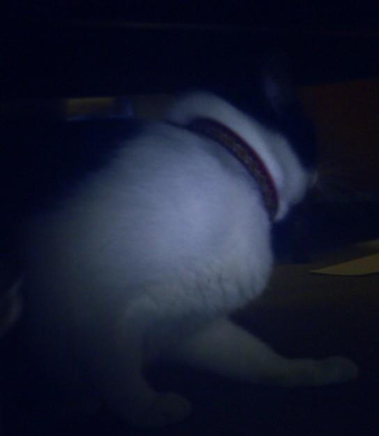 逃げ出すハチ君。ベッドの下に入ってしまいました…。