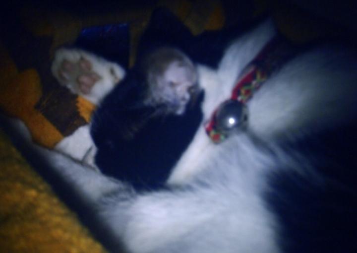 ハチ君はと見ると、お母ちゃんに添い寝せず、