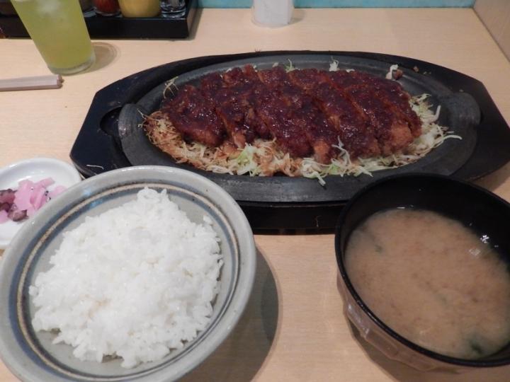 鉄板味噌カツ定食注文し、ハフハフ頂く。