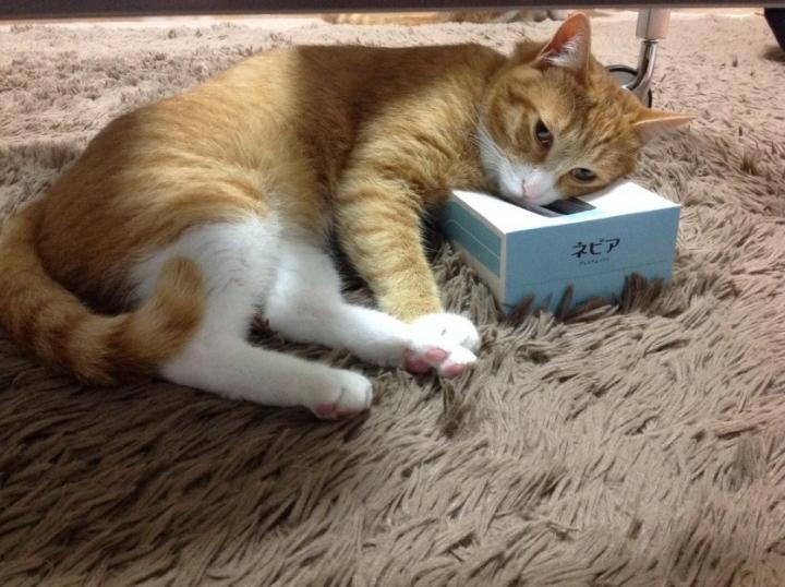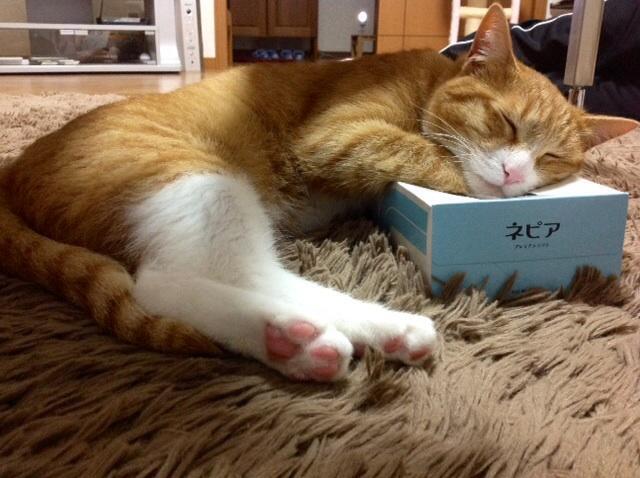 何時の間にか!!!テッシュ箱を枕にすやすや!!!!