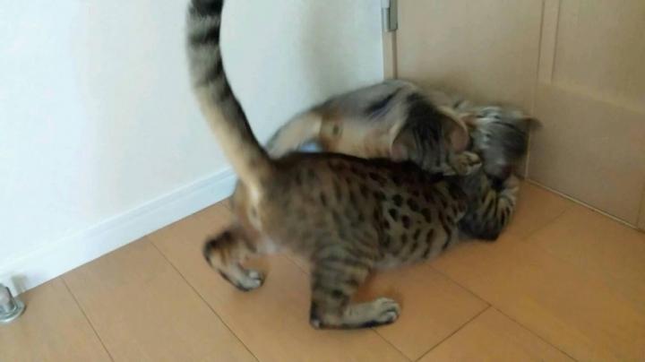 定番の戦いごっこ…部屋の隅で激しく繰り広げられてます。
