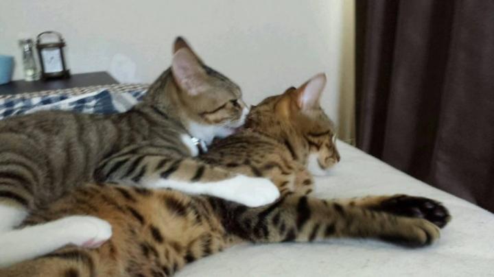 眠いニコちゃんを押さえつけて、無理矢理グルーミングして「あげる」サク。