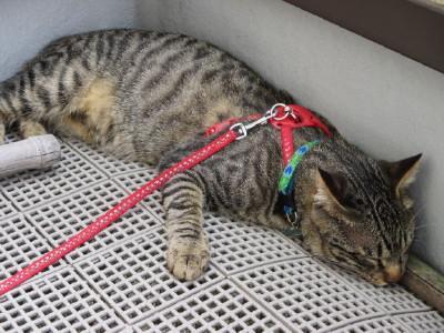 首輪がないとただのネコなので、間違われるといけないから、ハーネスつけて家におります(・_・)