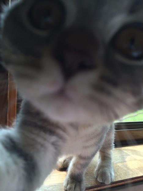 窓越しに見えるスズメを追いかけようとしたり・・・