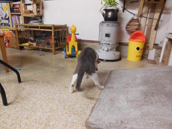 テツ地味にチエのマネ、今は輪ゴムに興味、ただ飛んだ先を見失う(^。^:)