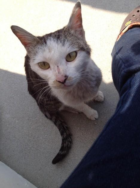 とてもとても痩せて フラフラ。顔や耳に傷。