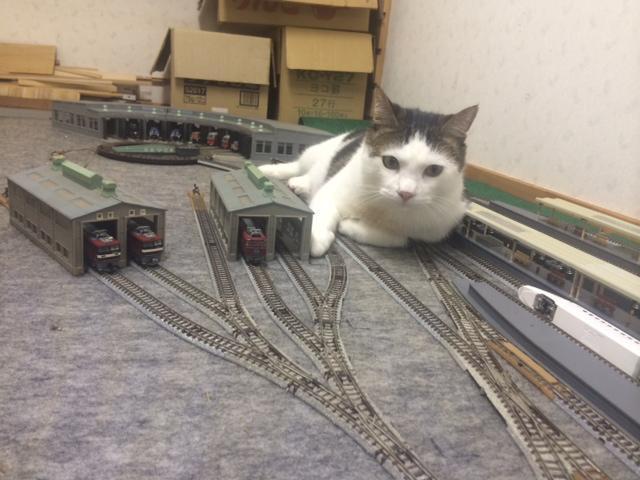 鉄道模型のお部屋でくつろいでます。巨大化して見える(笑