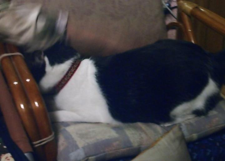 ハチ君は椅子に飛び乗り、お母ちゃんに背中ポンポンしてもらってます。