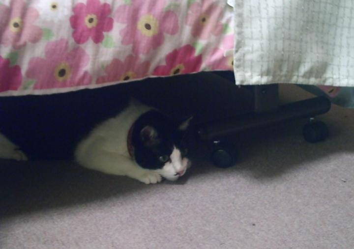 (仔猫は仔猫で、奥の部屋は静かなので、前より落ち着いています。)