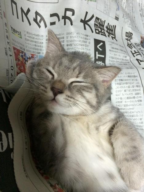皆様のお宅の猫ちゃんも新聞に乗りますか?