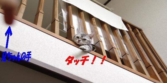 2階の吹き抜けから顔を出して、手を伸ばして一応タッチしようとしてくれる