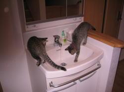 まだ、上がれないと思っていたのに、洗面台に上がってる!?
