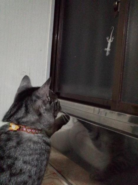 やもりくんも 頭の先っちょや しっぽをちょろり・・としか見せてくれません。