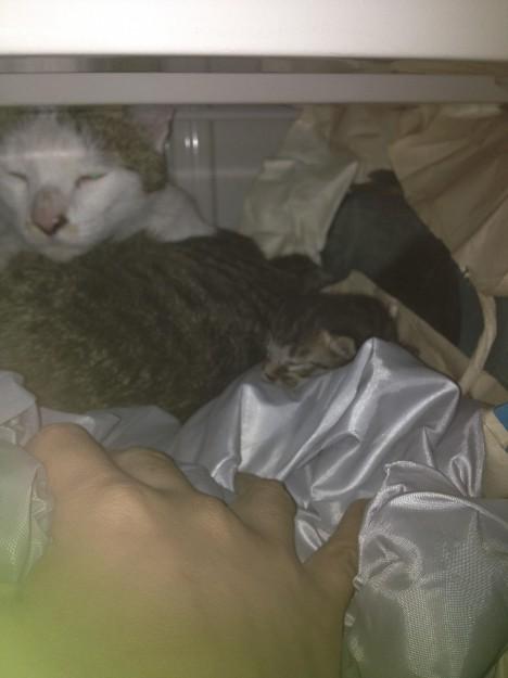 すごい奥の隙間に入ってしまって、なかなか確認できないけど、赤ちゃんの鳴き声は聞こえます。