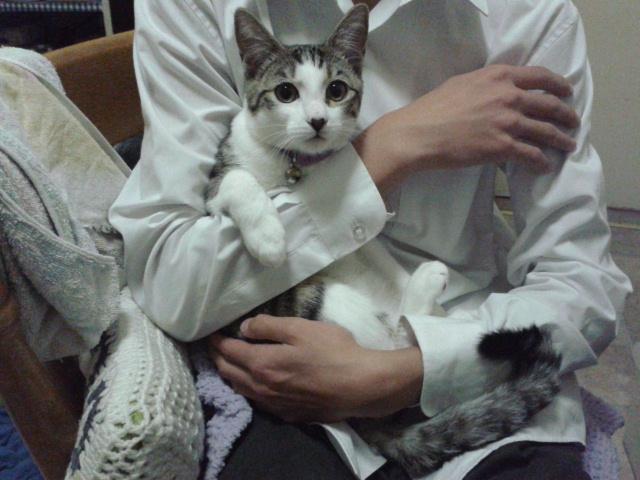 抱っこの嫌いなRupiが 昨晩は珍しく次男の腕の中でじっとしているので 撮りました。
