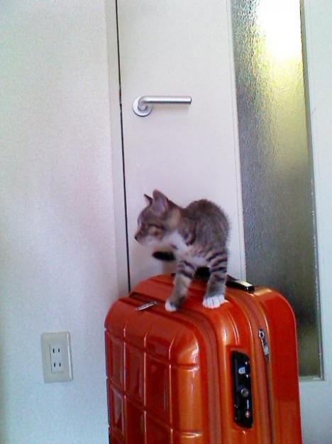 やっぱりママの革かばんがすき♪ そしてママはそんなあにゃたの おでこが好き♪