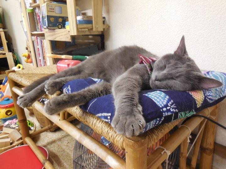 だらけた寝方(夜に鳴きすぎて昼抜け殻ユズ)