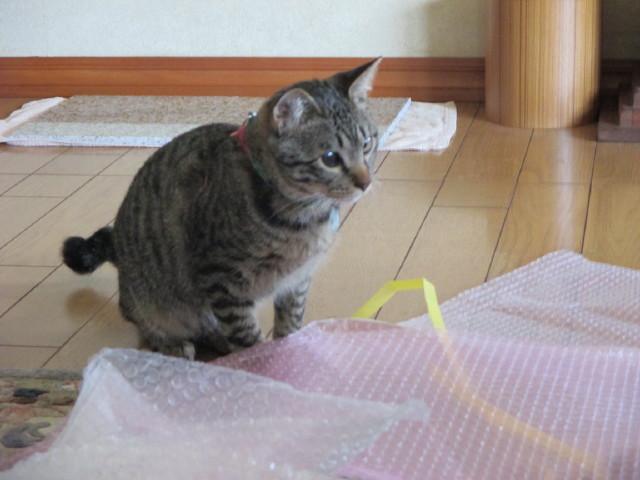 コジローは梱包材が気になる様子。