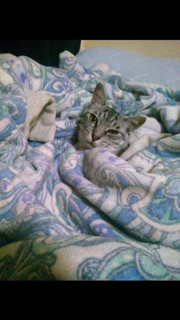 寒そうだったからぐるぐる巻にされたあも。