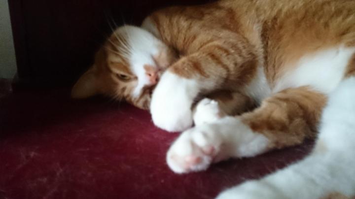 もっぱらリビングの入り口の四方から風が通る一等地でお昼寝です。