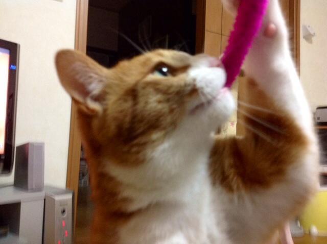 二階には、猫じゃらし!ハルくん!格闘中!!