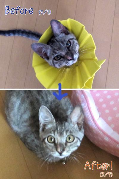 問題だったむうちゃんも、カラーが取れるくらいに回復!写真で比べてみると違いは歴然です!
