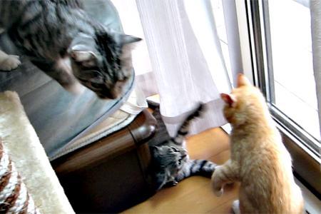 素早くて撮れなかったんですが、これが唯一の3ニャンショット!いえーい!