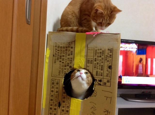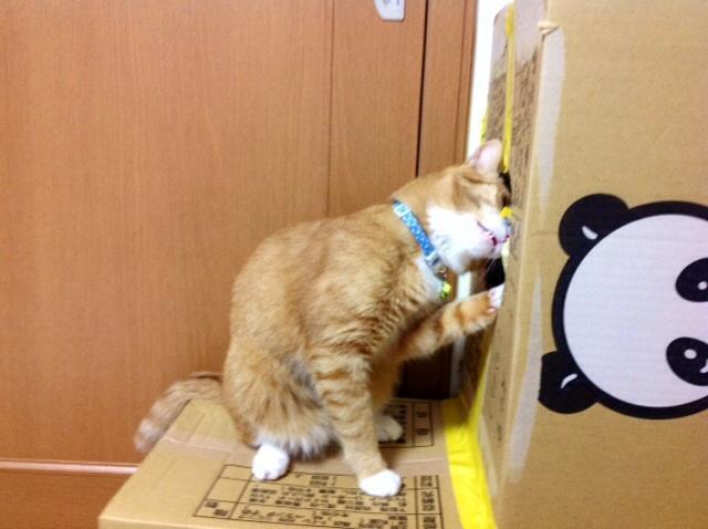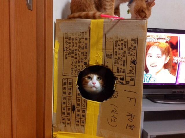 猫の習性で、よく台所のダンボールHOUSEに、隠れているのを思い出し!!