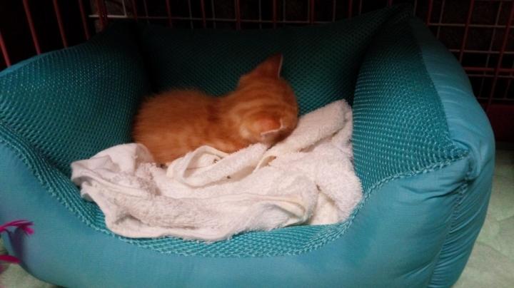 まだ小さくて、ケージの間から強引に抜け出ちゃったみたい。