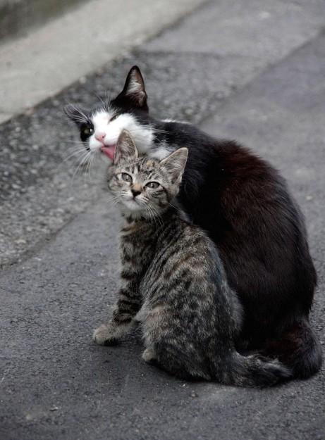 ママにゃんこもまだ1才にならない子猫ちゃんがママになっちゃって・・・。