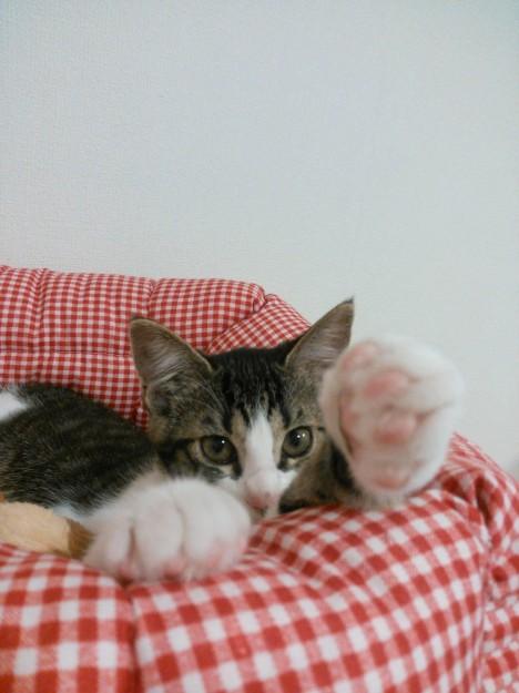 100円ショップのクッションで作った猫ベッド、ちんたらしてたので1ヶ月くらいかかってしまいましたがーようやく完成。