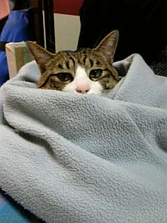 サスケが私のフリースにくるまってネコ巻きになってるっ!(00)