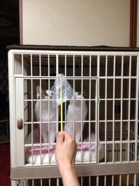 ケージに入れられ、おもちゃで遊んで、アピールを覚えるんだとか(・_・;
